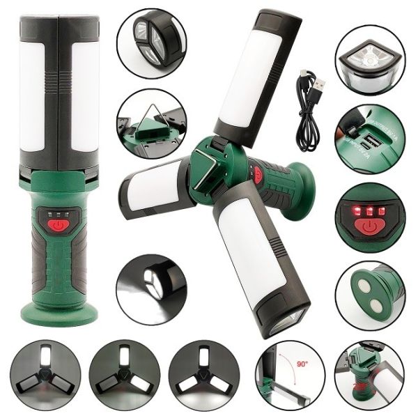 Rechargeable LED Camping Lantern 3 Leaves SMD Panels Flood Beam Work Light Foldable Magnet Handheld